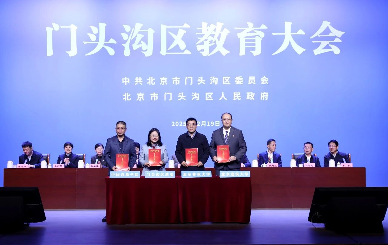 会上还举行相关合作签约仪式。门头沟区政府与首都师范大学签署了校地合作协议,双方将在人才培养、产教融合、科研创新等领域深化合作。门头沟区教委与北京林业大学、中国音乐学院、北京建筑大学签署了合作协议,将在大中小学思政教育一体化、艺术教育及师资培养等方面深入推进。