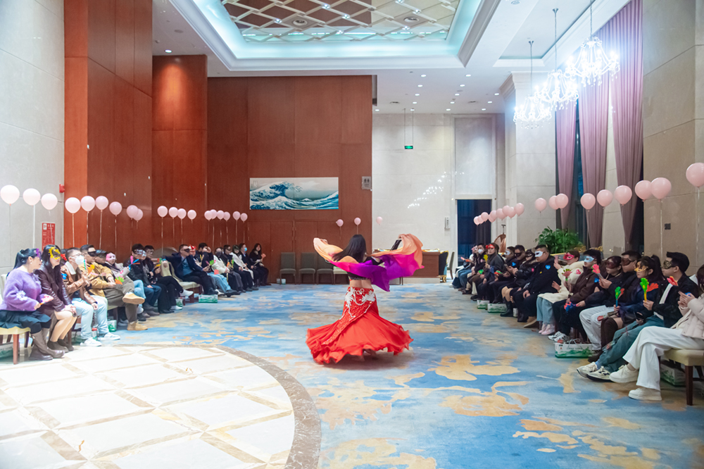 “相信我们见面,就是缘分起点。”主持人唐杨的开场白,道出了活动的初衷。在主办方精心设置的“社交缓冲带”——面具之下,素不相识的男女嘉宾褪去初见的拘谨。签到领取的玫瑰花与号码牌,成为后续心动的伏笔。一场热力四射的开场舞后,蒙着面的自我介绍低语流转,昵称、年龄、故乡、爱好……基本信息在刻意保留的“神秘感”中悄然交换。