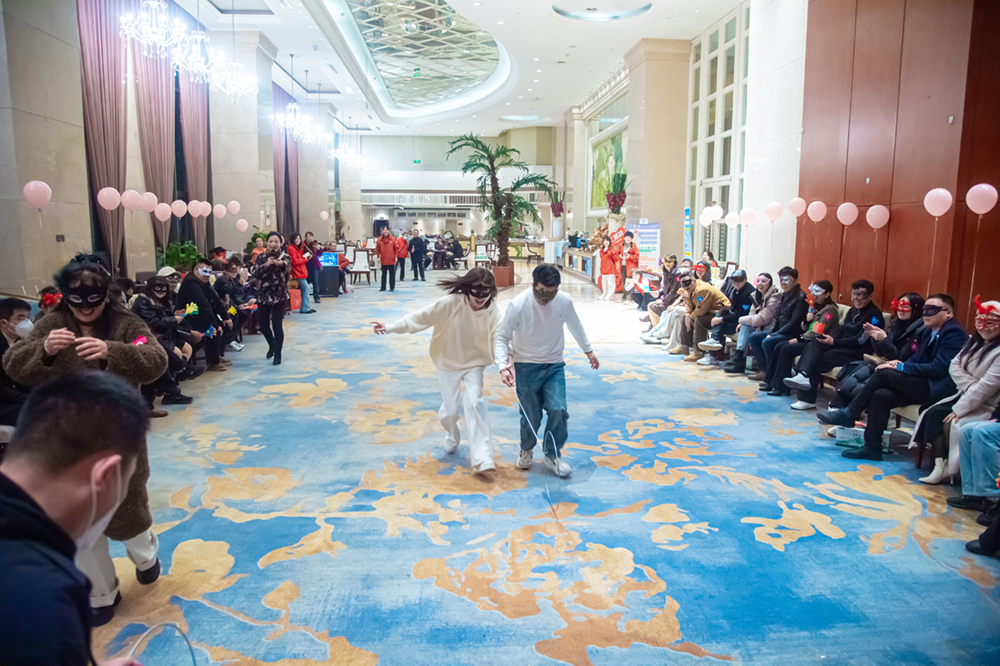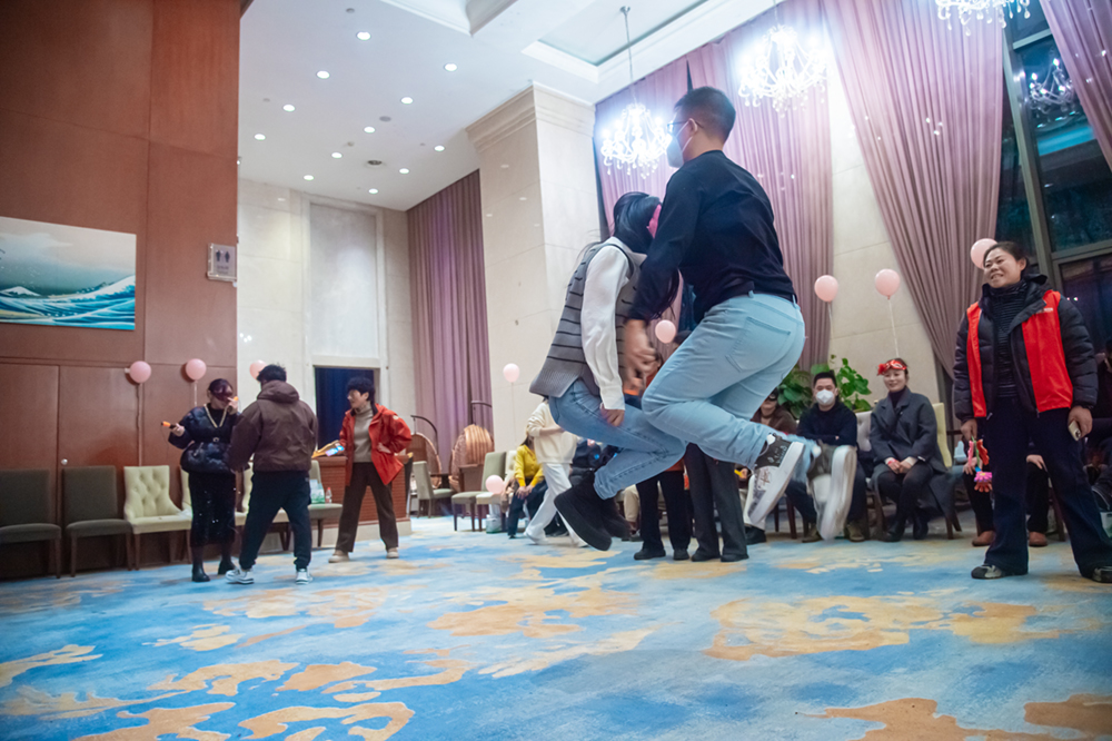 “背人赛跑”将气氛推向高潮。男生背起女生,或偶有女生背起男生,在指定路线上奋力折返。力量与速度的较量中,加油声此起彼伏。短暂休息时,两位女会员的才艺表演赢得了真诚掌声。“运气球”更显亲密无间,搭档们或背对背、或面对面,小心翼翼夹着气球冲刺,平衡与协作缺一不可。