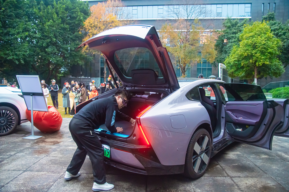 紧接着,户外草坪上的“小鹏汽车内寻宝”考验眼疾手快,30秒限时,男女搭档在车内搜寻隐藏礼品,寻得最多者再为团队添彩。