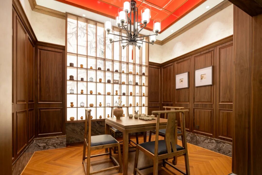 酒店外形设计呈灰色,呼应传统四合院风貌的青砖灰瓦,流线型设计却巧妙融入琴书旋律的节奏感。步入酒店大堂,仿佛穿越回清末民初的市井画卷,大堂一区域悬挂的老式鸟笼与仿茶肆布局的空间,瞬间唤起人们对“撂地卖艺”年代的记忆。设计师坦言:“我们不想做复古复刻,而是要用当代语言讲好传统故事。”