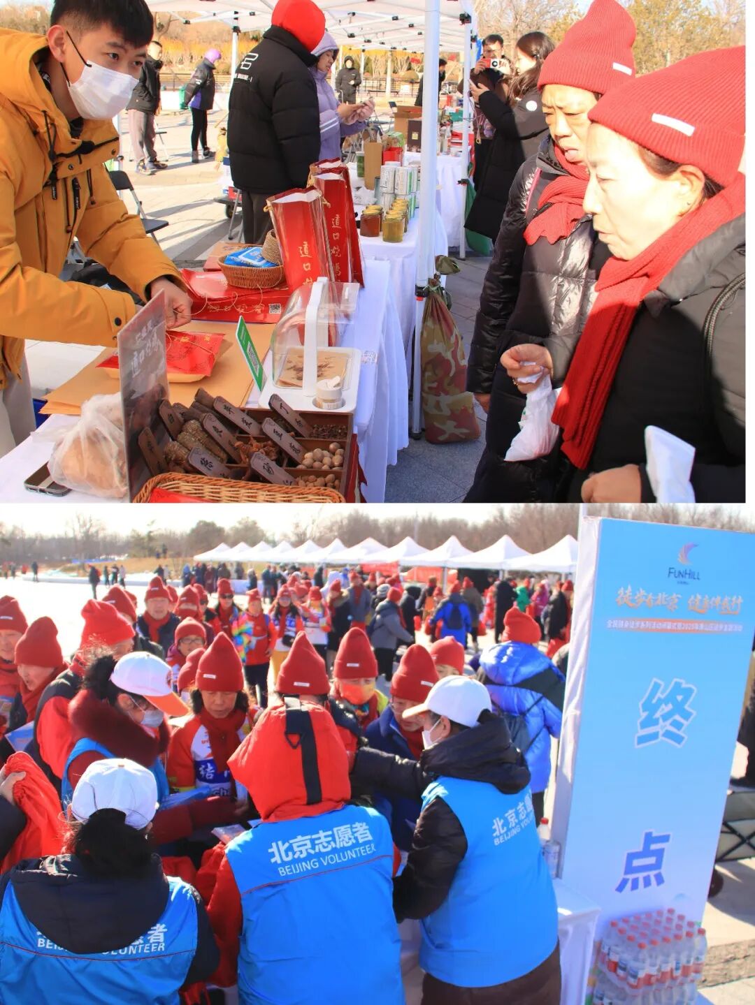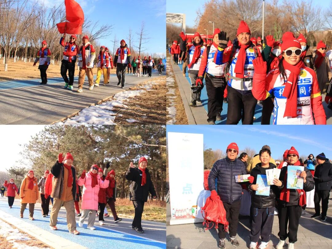 本次活动精心设计了5公里的徒步线路,沿长阳公园健身步道展开。为提升活动文化内涵与体验感,主办方采用打卡集章的认证方式,沿途设置两处认证点,印章图案融入房山地域文化元素,参与者手持定制打卡路书加盖专属印章,集齐印章即可兑换房山区精美文创产品一份。在终点领奖处,完成徒步的参与者陆续领取完赛证书、《冬至房山—房山区冬季健身和旅游攻略》和融入房山地域特色的文创徽章、冰箱贴、定制水杯等礼品以及内含拉力绳、跳绳、握力器的全民健身礼包,既传递了全民健身理念,也让健康生活方式得以延续。在长阳公园中心广场的展示区内,房山区名优特产、旅游景区推介、户外休闲用品等集中亮相;“走进非遗看北京”传统文化展示区人气高涨,书法、绘画、舞龙、空竹、太极拳等项目轮番呈现,非遗传承人与参与者热情互动,让大家在运动之余感受传统文化魅力。
