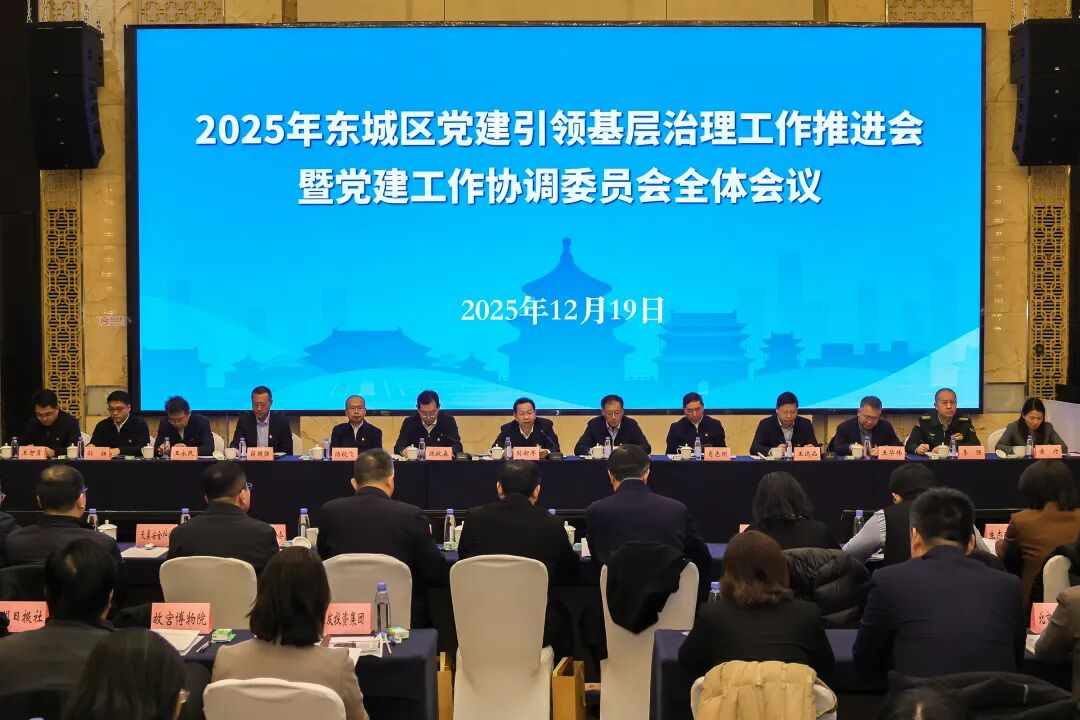 12月19日,2025年东城区党建引领基层治理工作推进会暨党建工作协调委员会全体会议召开。会上,“正阳友邻”东城区党建引领基层治理品牌正式发布。区领导孙新军、陈献森、肖志刚、汤钦飞、王达品、薛国强、王华伟、王永民、李强、孙扬、黄丹、王智勇、冯建国,商务部直属机关党委常务副书记谷军,中国绿发投资集团有限公司党委副书记、总经理蓝海,英大国际信托有限责任公司党委副书记、总经理吕阳,英大泰和财产保险股份有限公司总经理、党委副书记周全亮,中国光华科技基金会党委副书记、秘书长张达,以及中央纪委国家监委机关、最高人民检察院、中央编办等70余家驻区成员单位有关负责同志参加。区委副书记、区长陈献森主持会议。