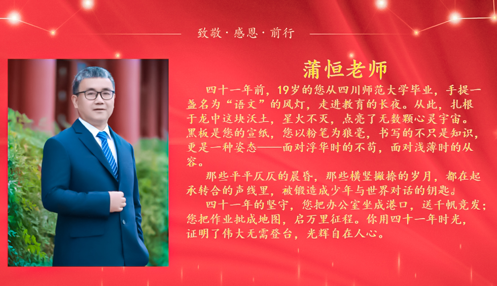 致敬每一位默默奉献的龙中人,是你们用青春与坚守,照亮了学子的前行之路,也为龙中注入了永恒的温暖与力量。愿教育的薪火代代相传,初心不忘,芳华永驻!
