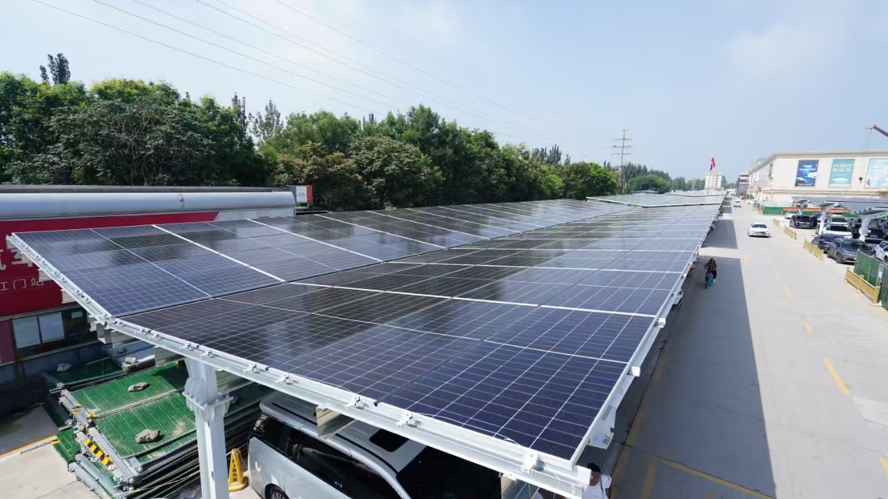 在不新增用地的前提下,完成存量空间的绿色升级。由北京首资新能源科技有限公司(以下简称“首资新能源”)投资承建的丰台区大红门集美家居广场2兆瓦分布式车棚光伏建设项目(以下简称“2兆瓦项目”),自11月4日投运以来,系统运行稳定高效,已累计发电16万度。经测算,项目每年可稳定发电250万度,所产生的绿色电能可直接供应大红门集美家居广场运营及新能源汽车充电使用。