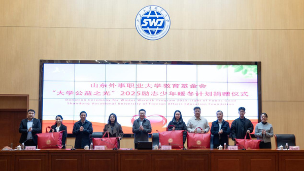 据悉,本次活动由山东外事职业大学教育基金会发起,得到了山东众邦社会公益服务中心的全力支持,捐赠物资价值达222.7万元。山东外事职业大学将持续秉持“汇聚爱心、成就梦想”的使命,搭建公益桥梁,联动社会力量,让关爱与责任在校园传递,为青年学子的成长保驾护航,为公益事业发展注入持久动力。