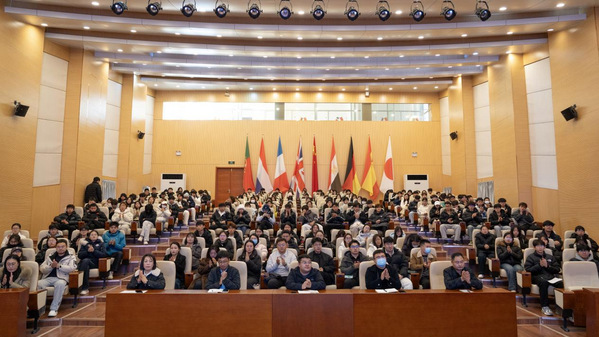 李船五代表山东外事职业大学教育基金会致辞,向山东众邦社会公益服务中心的慷慨善举致以崇高敬意,强调真正的公益不仅在于物质赠予,更在于精神唤醒与价值传递。他希望同学们深刻感受这份温暖的重量,将社会的信任与期许转化为奋进动力,未来学有所成时,将这份善意接力传递,用微小善行诠释公益精神。
