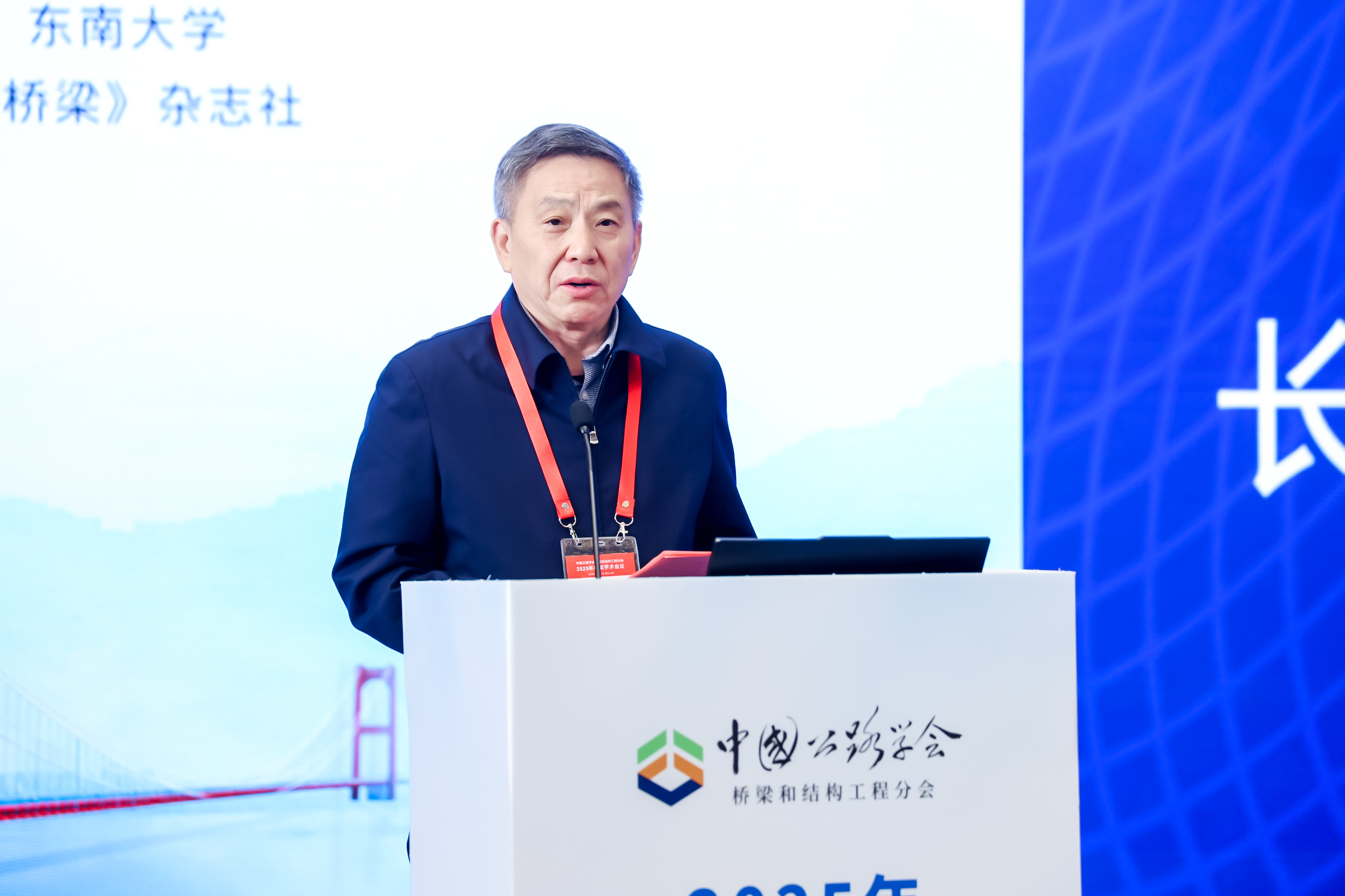 中国工程院院士、全国工程勘察设计大师、中交集团首席科学家、《Smart Civil Infrastructures》主编张喜刚教授首先致欢迎辞。他指出,当前国际科技领域正经历百年未有之大变局,各种颠覆性技术喷薄涌现;与此同时,国家正全面推进“交通强国”“数字中国”等一系列重大战略部署。在这一历史性交汇点上,土木工程——这一承载着人类文明发展与安全保障的古老学科,迎来了千载难逢的“智变”机遇!土木人所肩负的,不仅是技术革新的使命,更是支撑民族文化复兴、参与全球知识重塑的时代重任。一流期刊是科技强国的重要拼图,该刊将立足全球视野、融汇前沿成果,以卓越的学术品质和鲜明的实践导向,推动建筑业向更安全、更智能、更绿色的方向迈进。