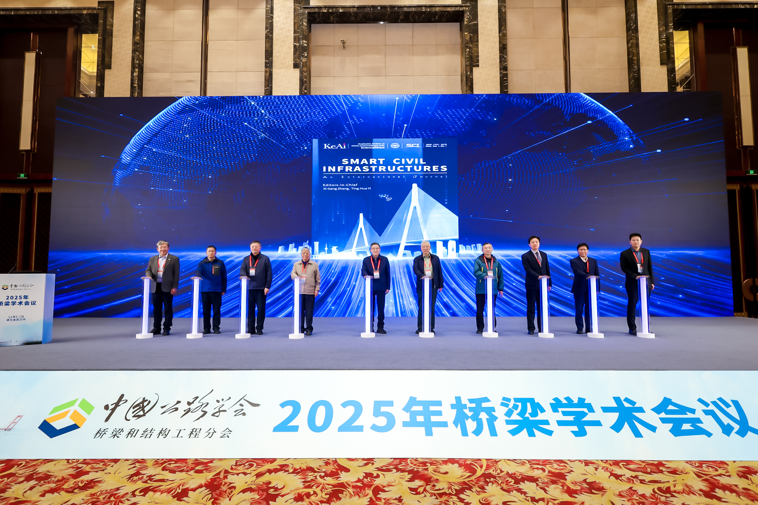 2025年12月6日,由我校主办的国际学术期刊《Smart Civil Infrastructures》创刊仪式,在全国桥梁学术会议上隆重举行。仪式吸引了包括中国工程院院士、外国工程院院士、全国工程勘察设计大师等在内的600余位国内外专家学者共同出席。