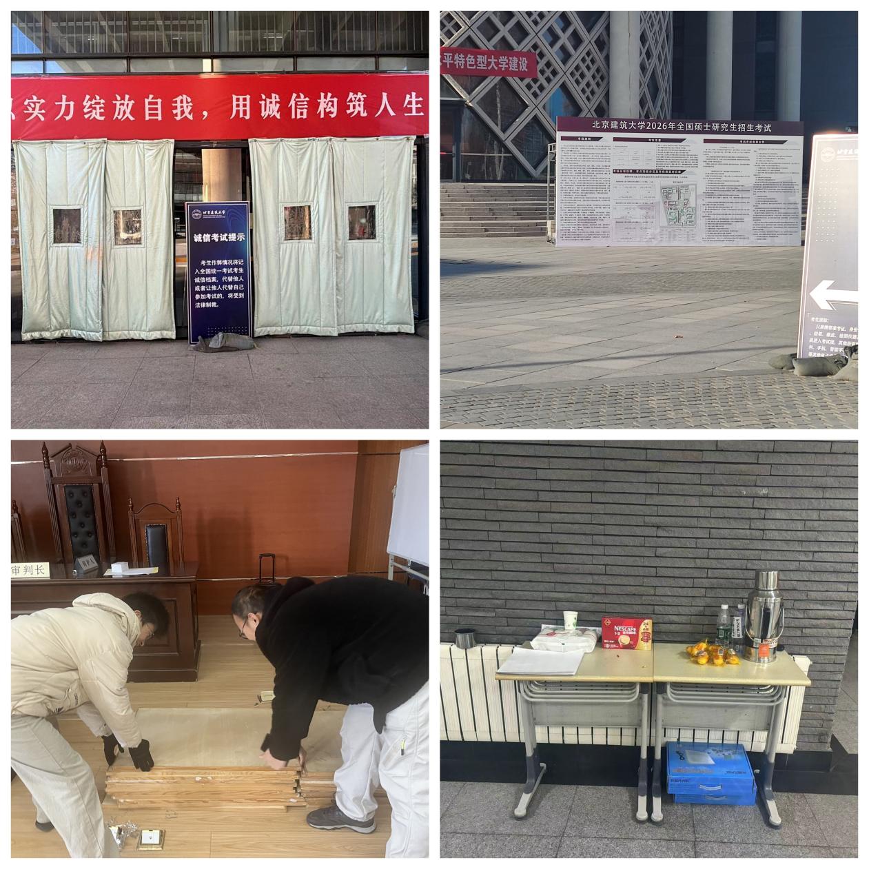 12月20-21日,北京建筑大学考点2026年全国硕士研究生招生考试(初试)顺利举行。今年北京建筑大学考点共承接考生1304人,其中本校考生407人,外校考生897人。学校共设置考场49个,备用考场5个。共有180余名教职工参加监考考务工作,超过200名志愿者、安保人员和后勤服务人员参与各项组织保障工作。