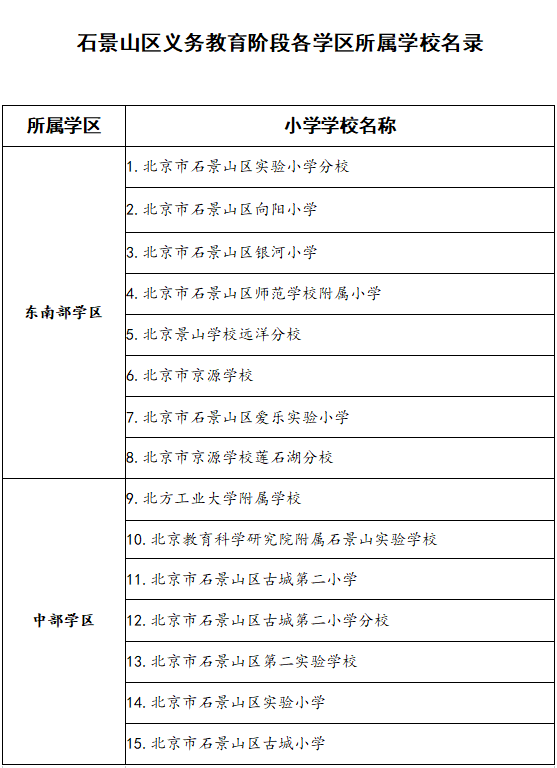 注:目前各学区内仅有部分学校相应年级有少量学位能够接收符合条件的转入学生,区级学籍管理部门将据此统筹安排。小学2023级(即本学年小学3年级)石景山区学校学位整体紧张,区级将根据各学校学位空余情况,在全区范围内进行统筹分配。