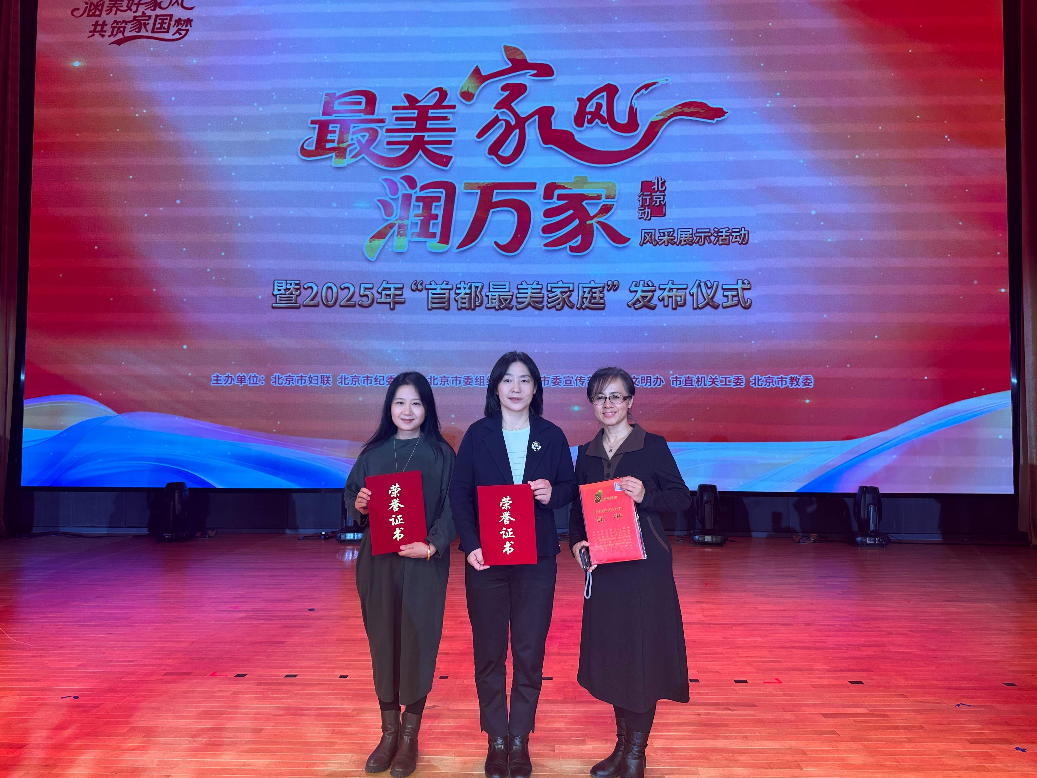12月20日,由北京市妇联、北京市委组织部、北京市委宣传部、北京市教委等七部门联合主办的“最美家风润万家”北京行动风采展示活动暨2025年“首都最美家庭”发布仪式,我校一举斩获三项殊荣——“基层妇联家风建设创新案例”“创意家风文化作品”“首都最美家庭”。
