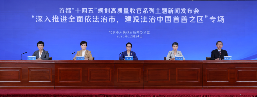 ▲12月24日,北京市人民政府新闻办公室举行首都“十四五”规划高质量收官系列主题新闻发布会——“深入推进全面依法治市,建设法治中国首善之区”专场。市委依法治市办、市司法局主要负责同志,市委政法委、市人大法工委、市司法局相关负责同志介绍情况并回答记者提问。北京市委宣传部对外新闻处处长叶昶主持。