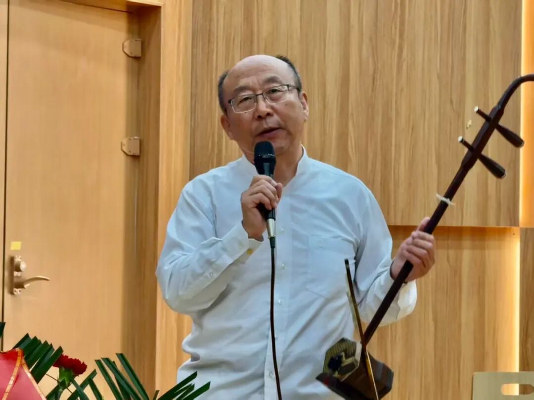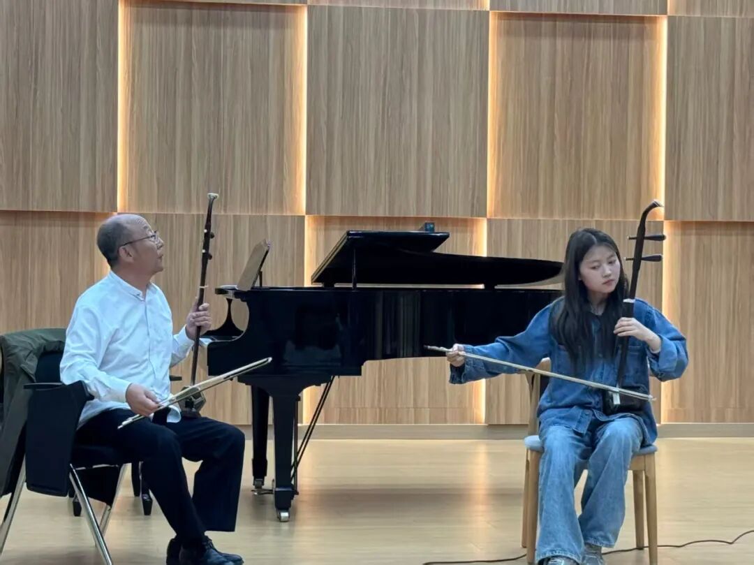 此外,田再励还为师生举办了“胡琴经典作品赏析”专题讲座。他采用“讲解+演奏”模式,依托典籍资料,系统梳理胡琴从奚琴、嵇琴到现代形制的演变脉络,解析二胡、京胡等不同胡琴类乐器的艺术特质;并通过深度解读《二泉映月》《豫北叙事曲》等作品,阐释胡琴音乐的艺术创新与文化内涵。讲座现场,他与助演嘉宾及“琴园”民族室内乐团联袂演绎《寒鸦戏水》《喜洋洋》等曲目,实现学术理论与艺术实践的深度融合。这些兼具思想性与观赏性的活动,不仅拓宽了师生的艺术视野,更点燃了他们传承民族音乐的热情。