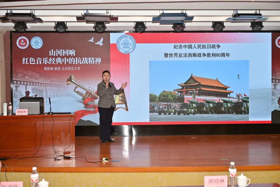 今年是纪念中国人民抗日战争暨世界反法西斯战争胜利80周年,为进一步提升师生的爱国主义精神和民族自信心、自豪感,12月22日下午,学校邀请北京师范大学马克思主义学院教授、博士生导师熊晓琳应邀作“山河回响——红色音乐经典中的抗战精神”专题讲座。讲座由学校语言文字工作委员会、教务处、校团委、马克思主义学院联合主办,师生代表共同聆听红色旋律背后的历史故事,在经典旋律与历史叙事中接受沉浸式精神洗礼。副校长王凯出席活动并讲话。