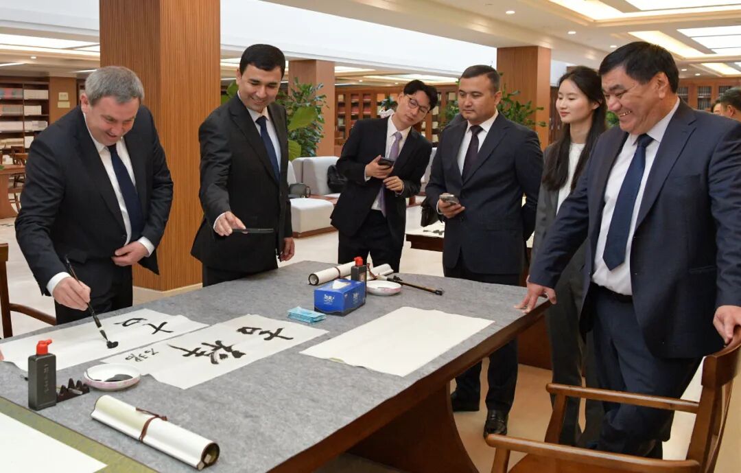 乌兹别克斯坦检察官代表团来华研修期间,体验中国书法艺术。