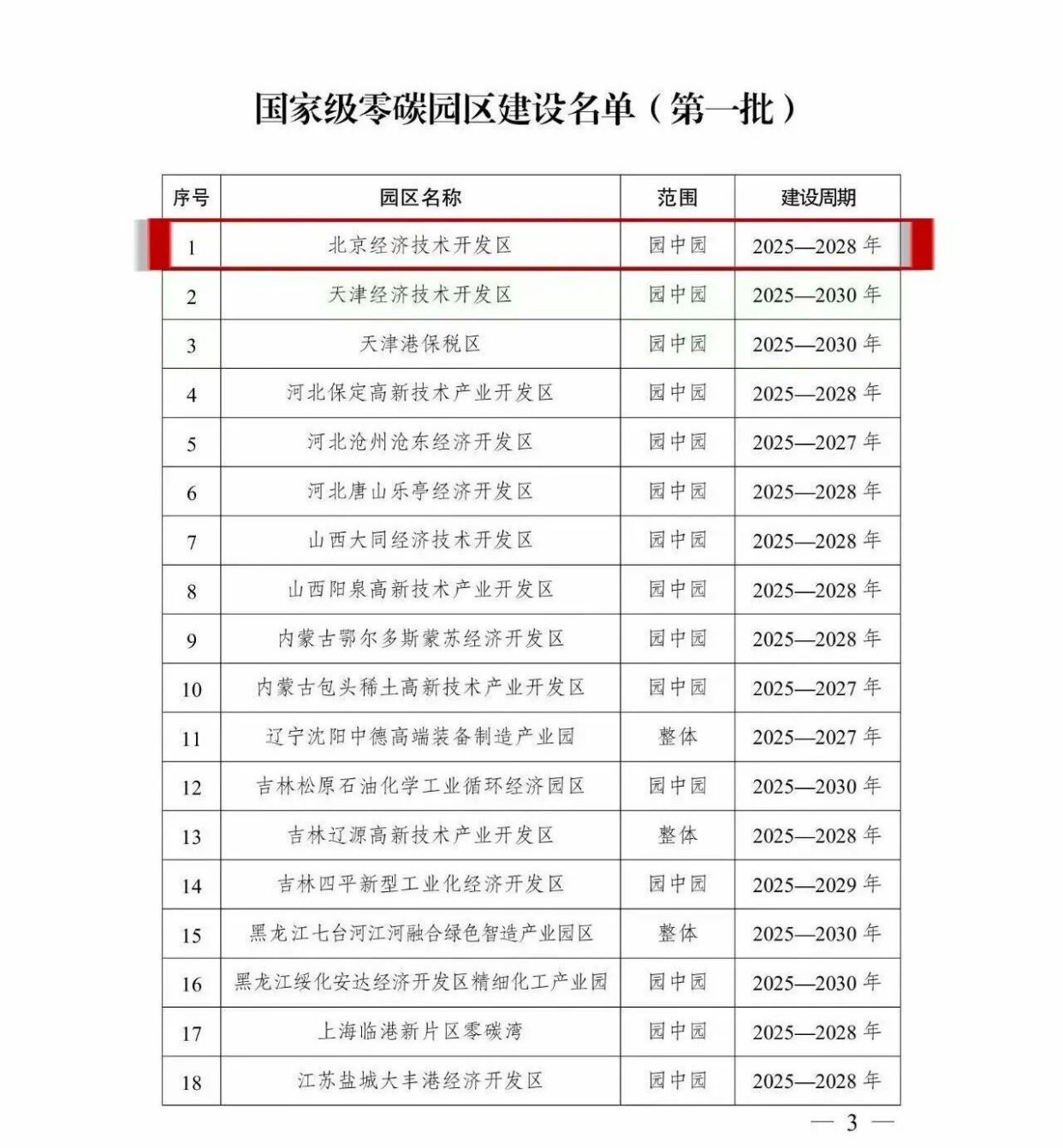 2025年12月26日,国家发展改革委办公厅、工业和信息化部办公厅 、国家能源局综合司联合印发《国家级零碳园区建设名单(第一批)》,北京经济技术开发区(简称北京经开区,又称北京亦庄)成功入选。这一重要认定,既是对北京经开区过往绿色低碳发展成效的充分肯定,更是推动区域高质量发展与 “双碳” 目标深度融合的重大契机。