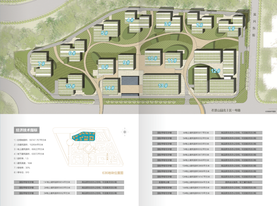 636地块地上建有15栋建筑单体,其中有13栋独栋墅级办公楼,每栋可根据实际需求划分为1-3个独立的办公单元。
