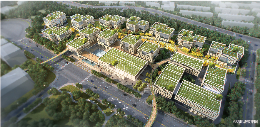 636地块位于整体园区的西北角,南侧临近639地块与园区中心绿地,东侧紧邻637地块。