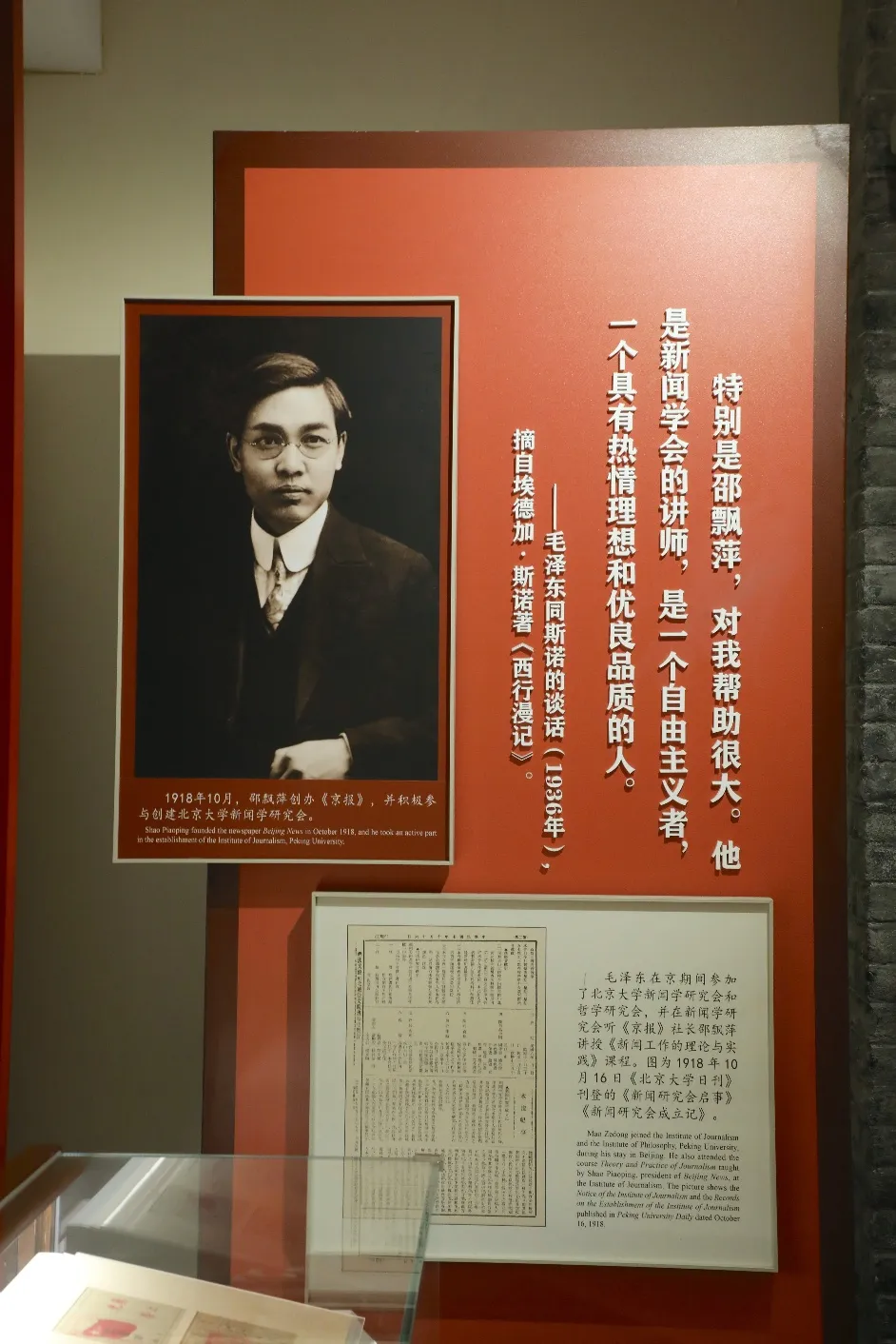 由于工作关系,毛泽东时常到李大钊处请教。在李大钊的引领下,毛泽东在北大红楼积极参加北大哲学研究会以及新闻学研究会等学会活动,汲取新思想。在新闻学研究会,毛泽东聆听《京报》社长邵飘萍讲授《新闻工作的理论与实践》课程,后来毛泽东回忆:“特别是邵飘萍,对我帮助很大。”
