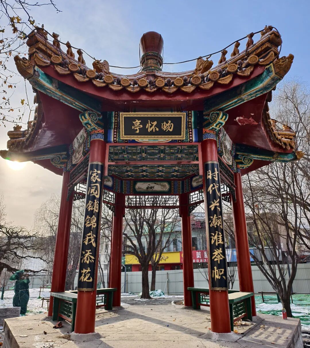 近日,我区一批公园亭廊悄然“换装”,不仅拥有“柔远亭”“畅怀亭”等雅致新名,更挂上了量身定制的楹联,成为公园中一道可读、可品、可流传的新风景。