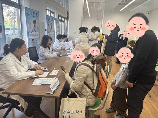市卫健委人口家庭处的党员和社区志愿者为家长们解读育儿补贴政策,发放科学育儿指南等宣传材料,让家长在获取医疗服务的同时,同步了解最新育儿政策支持,实现 “医疗+政策”双服务全覆盖。