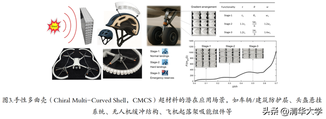 凭借“高效率-高吸能-轻量化”的综合优势,CMCS超材料有望在提高防护等级的同时有效降低结构质量,减小冲击传递,提升装备/结构的安全性与可靠性,在车辆/建筑防护层、头盔悬挂系统、无人机缓冲结构、飞机起落架吸能组件等工程场景中具有广阔的应用前景。