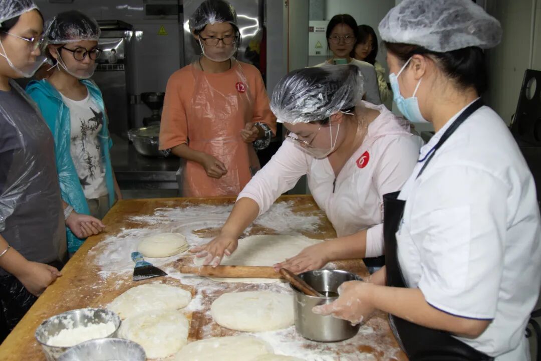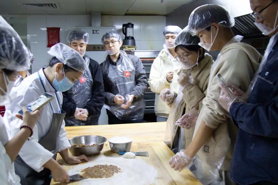 主食课堂上,揉面、擀皮、发酵、塑形的过程,成为学子锤炼匠心的生动课堂。从蓬松暄软的蒸花卷,到外酥里嫩的烙大饼,再到造型各异的饺子,厨师俯身指导揉面力度、把控擀皮厚度,细致讲解发酵时间与捏褶技巧;学子们互帮互学,分享揉面小窍门,协助调整面点造型,案板上的面团在反复揉捏中逐渐成型,蒸笼升腾的热气裹挟着麦香,让每一份付出都收获香甜回报。