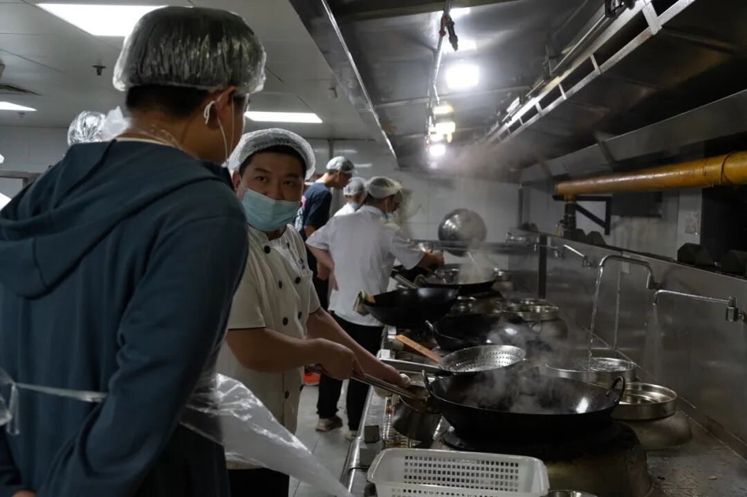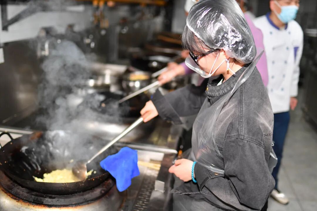 副食课堂则是风味与技艺的碰撞。6期课程涵盖木须肉、水煮肉、鱼香茄子、麻婆豆腐等多道家常菜,厨师拆解每道菜的制作步骤,详解调味比例与火候把控要点。同学们戴上厨师帽、系上围裙,手持炒勺从切配食材练起,逐步掌握颠锅翻炒技巧,看着生食材在自己手中变成色香味俱全的佳肴,惊喜与自豪溢于言表。