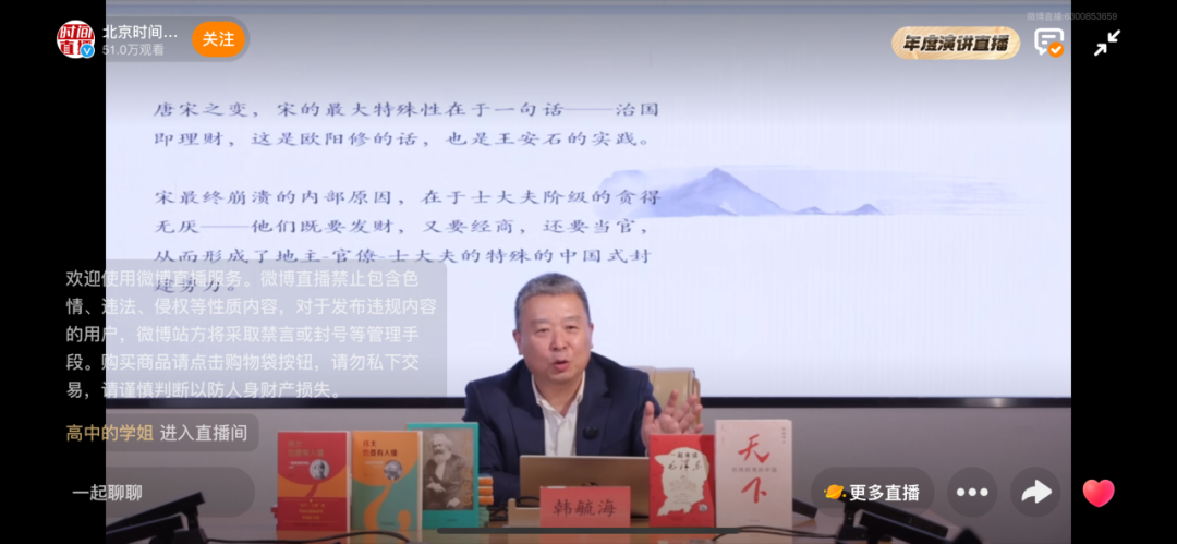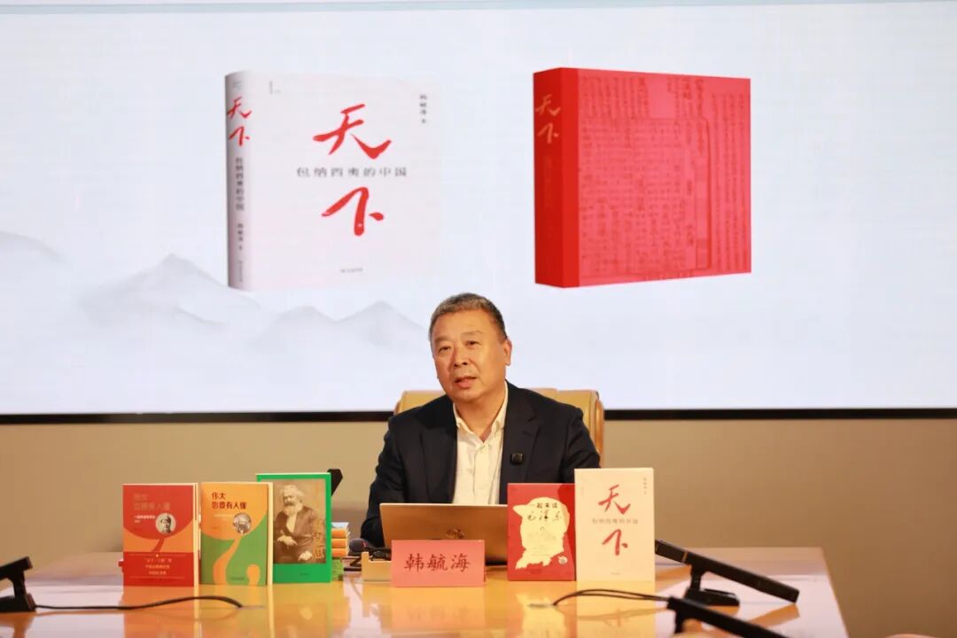 ▲图为韩毓海教授多部代表作入驻“赶考”书吧。