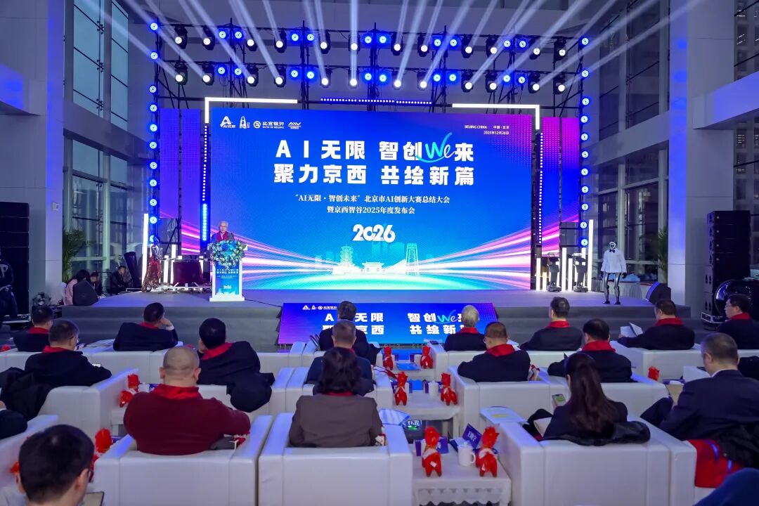 12月26日,以“AI无限 智创未来・聚力京西 共绘新篇”为主题的北京市AI创新大赛总结大会暨京西智谷2025年度发布会在中关村门头沟园举行。