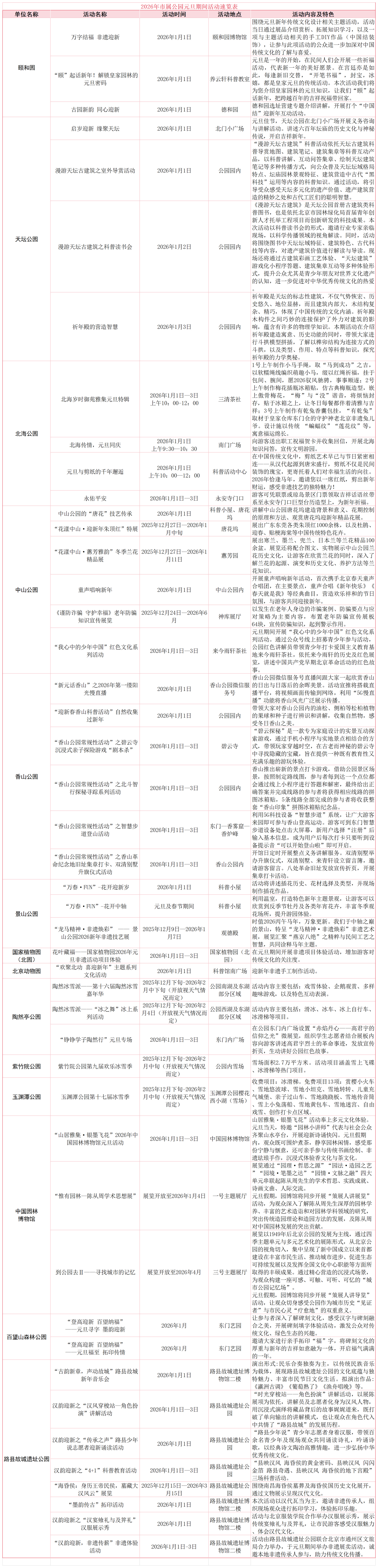 2026年市属公园元旦期间活动全揭秘