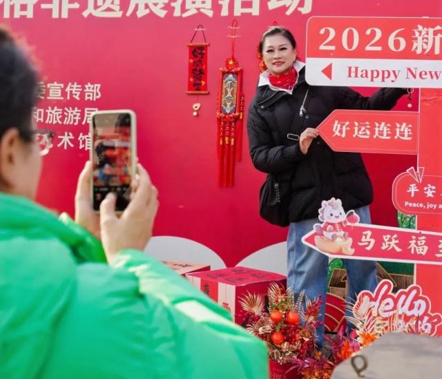 现场精心设置的主题打卡墙,浓郁的国风氛围搭配喜庆的新年元素,吸引众多市民游客拍照打卡,定格新年的美好瞬间。本次活动不仅为市民游客奉上了一场精彩的文化大餐,更搭建起了非遗传承与交流的平台,让更多人领略到威海本土非遗的独特魅力。