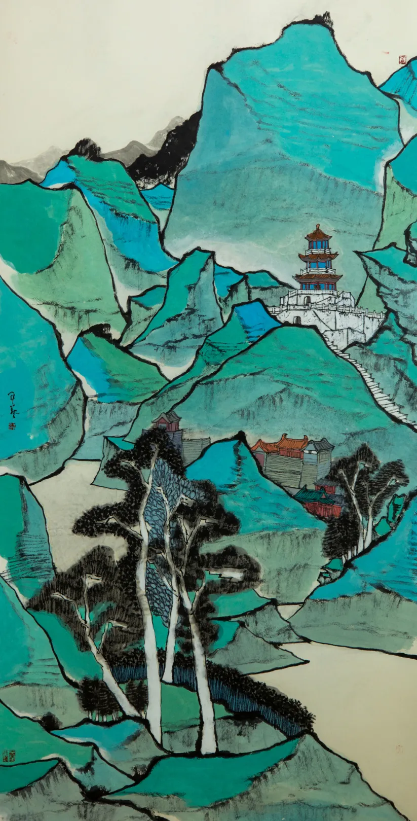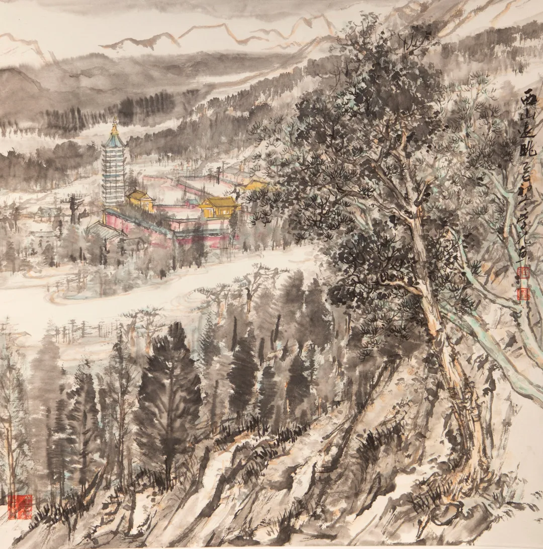 曾军艺(特邀) 国画 《叠彩化境之石景山功碑阁》