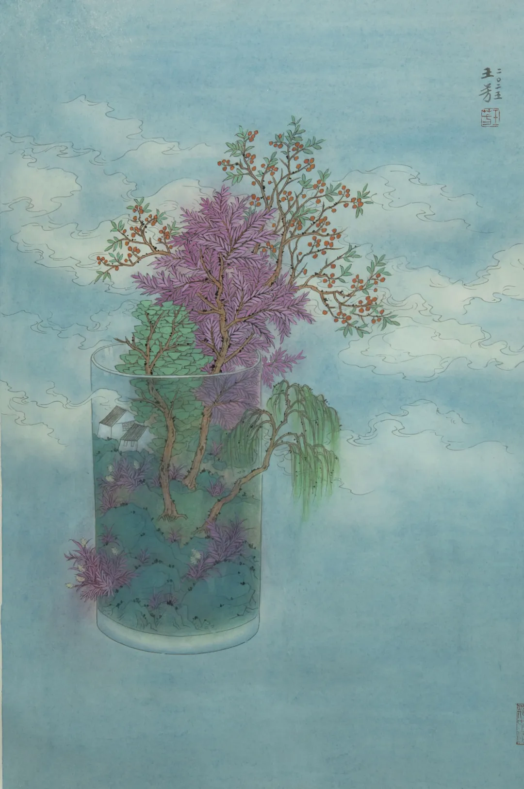 王芳(特邀)国画《瓶中信•晴岚暖翠1》