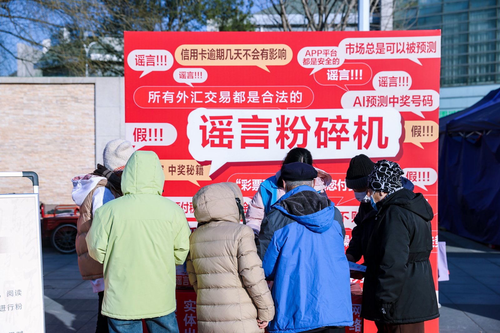 活动现场不仅设立有专业咨询服务,还让反诈知识变成了可互动、可体验的游戏。主会场上,“重剑出击”“谣言粉碎机”“远离圈套”等趣味互动项目,让居民在沉浸式参与中直观掌握识骗防骗技巧和“安心购彩”知识,各方与居民、志愿者面对面交流,倾听基层反诈实践中的真实声音。