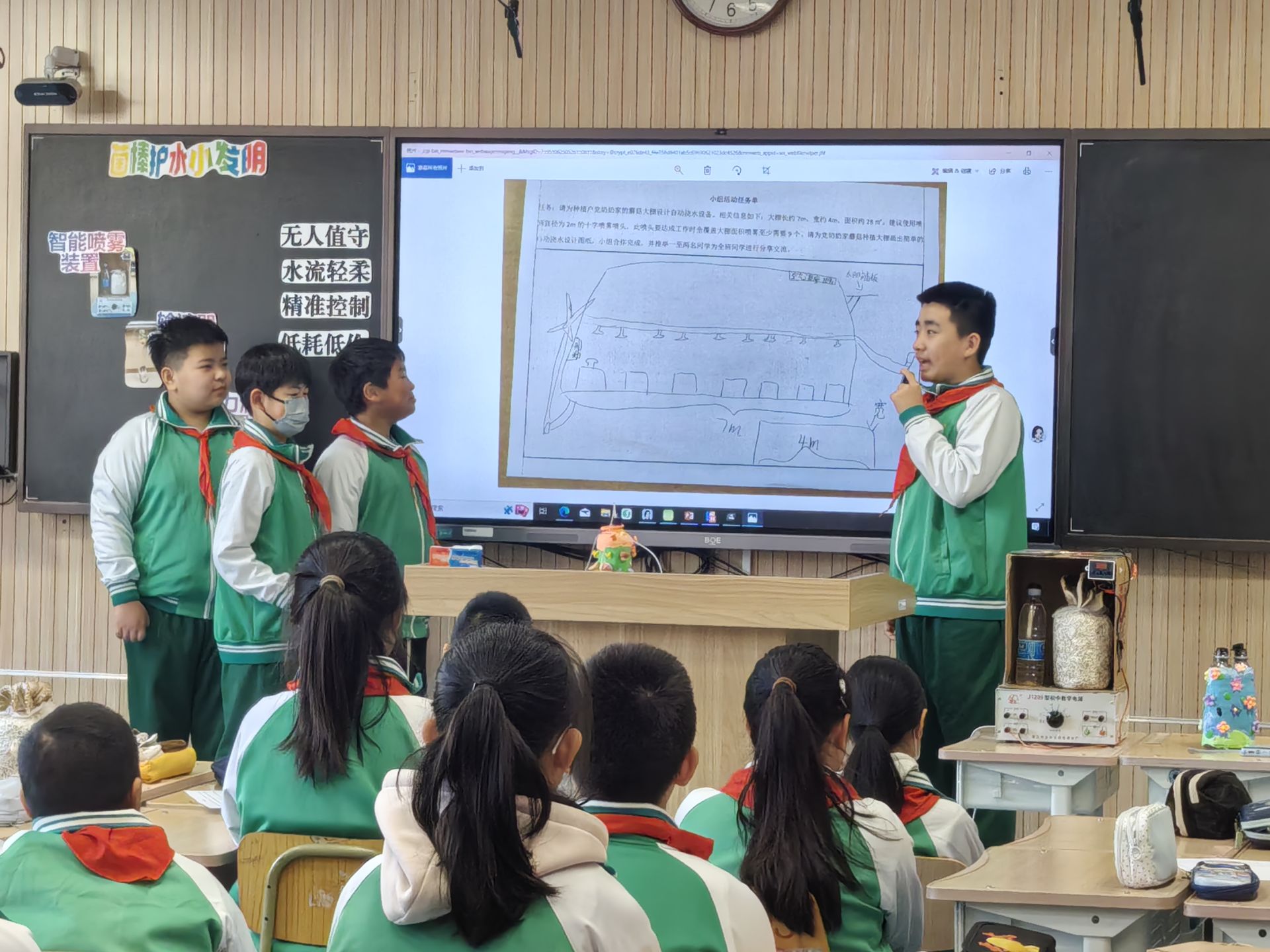 “这里是湿度自动感应装置,湿度没到就自动浇水,湿度够了浇水装置就自动关闭。”中山街小学永乐店校区学生王钰柏讲解着设计原理,“我们的设计要满足四个条件,那就是无人值守、水流轻柔、精准控制、低耗低价。”该项目设计灵感来源于科技小院研学活动,带回家中的菌棒因为疏于浇水而干枯了,学生们想到科技小院里的“蘑菇智能公寓”,决定通过研发家庭版自动浇水设备来解决问题。