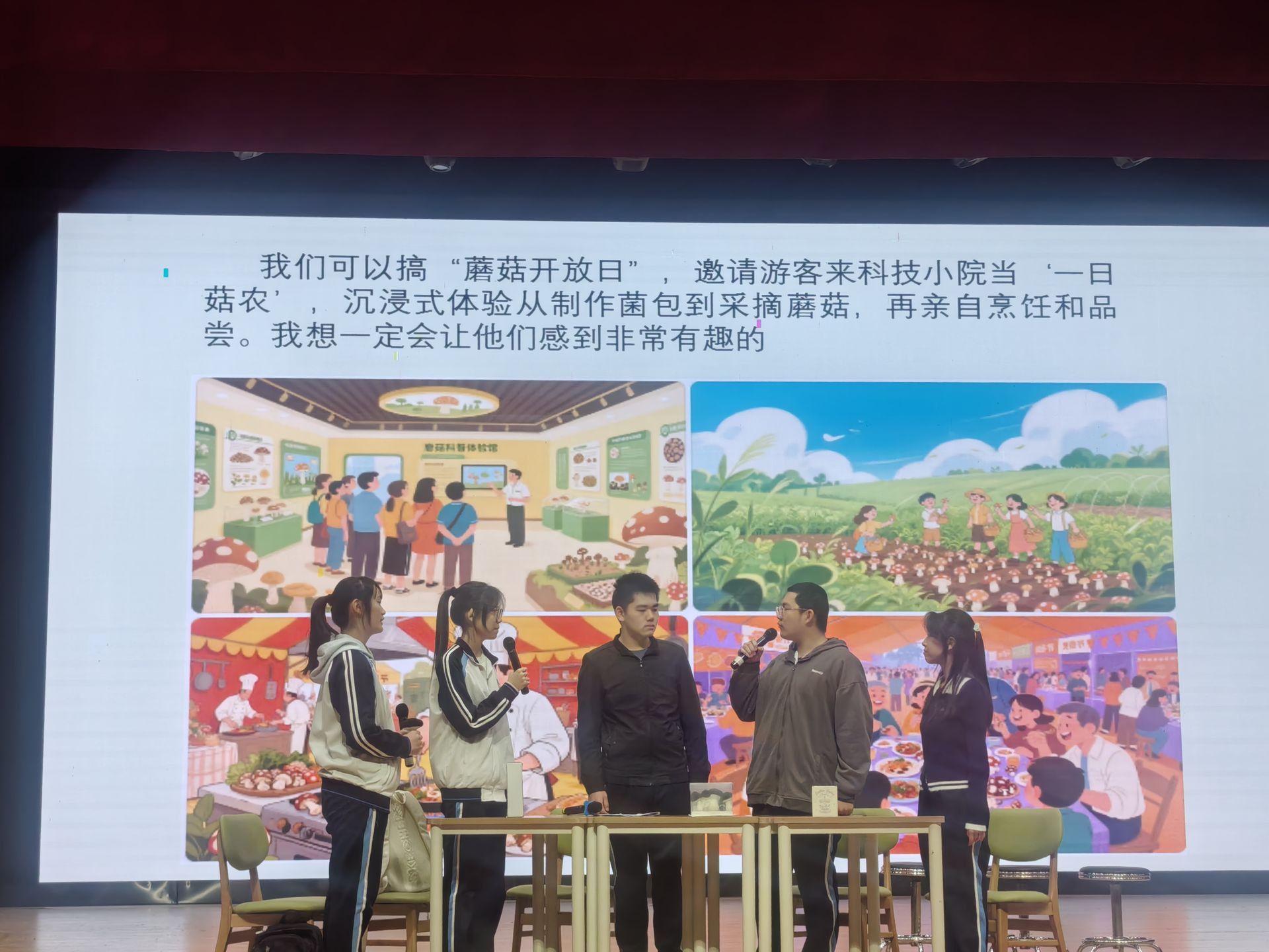 永乐店中学高中部学生则围绕产品营销绞尽脑汁,用创意让蘑菇更“值钱”。美味的榆黄酱是“下饭神器”,“都市微农场”蘑菇种植礼盒让每个家庭都能参与种植,一款名为“运河菇影”的蘑菇包装礼盒写满运河故事……除了丰富多样的产品,学生们还设计了“蘑菇开放日”主题活动、创编了“蘑菇奇幻之旅”主题动画片,为家乡打造绿色、科技、文化发展名片。