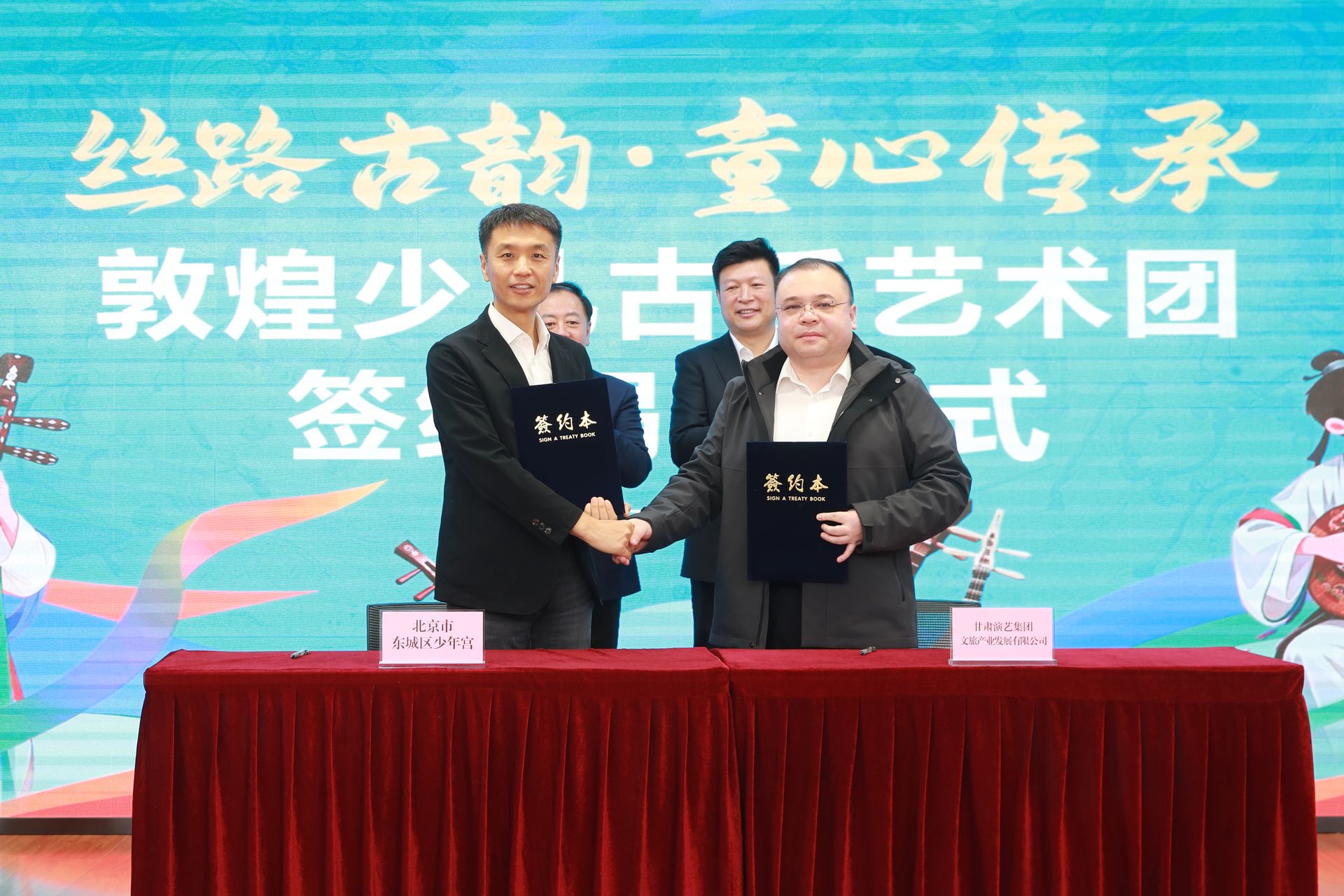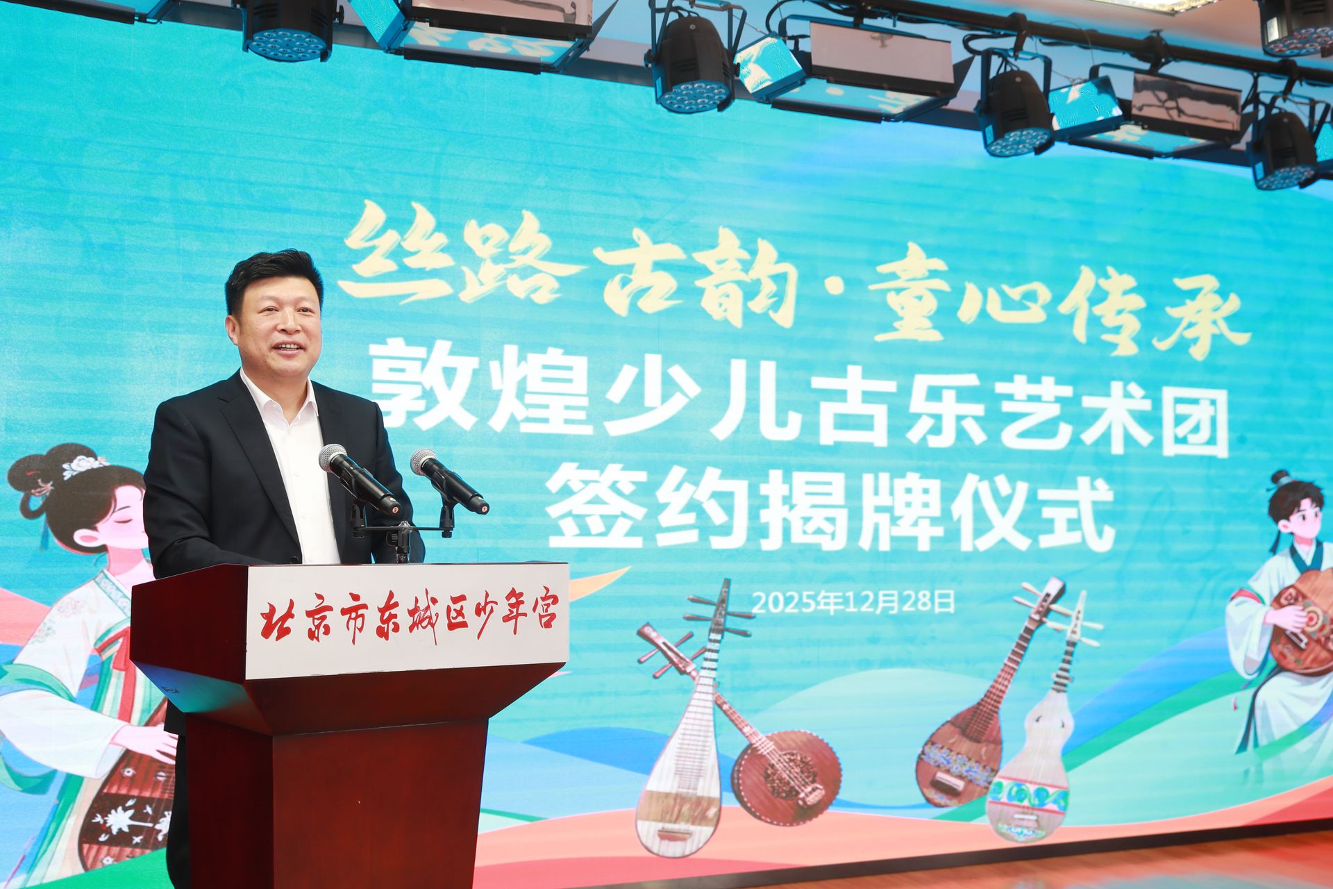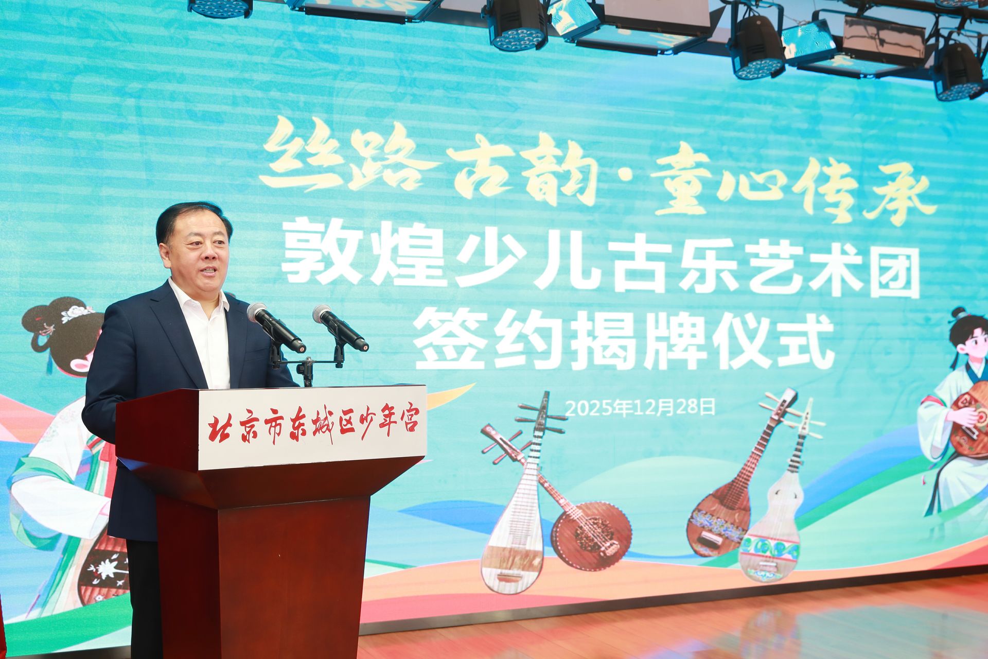 12月28日,“敦煌少儿古乐艺术团”在京揭牌成立。艺术团由北京市东城区少年宫与甘肃演艺集团文旅产业发展有限公司联合创办。此次双方合作成立艺术团是京陇两地文化教育资源深度融合的重要举措,旨在推动敦煌古乐、敦煌舞等艺术在青少年美育领域的传承与发展,为中华优秀传统文化注入新时代活力。