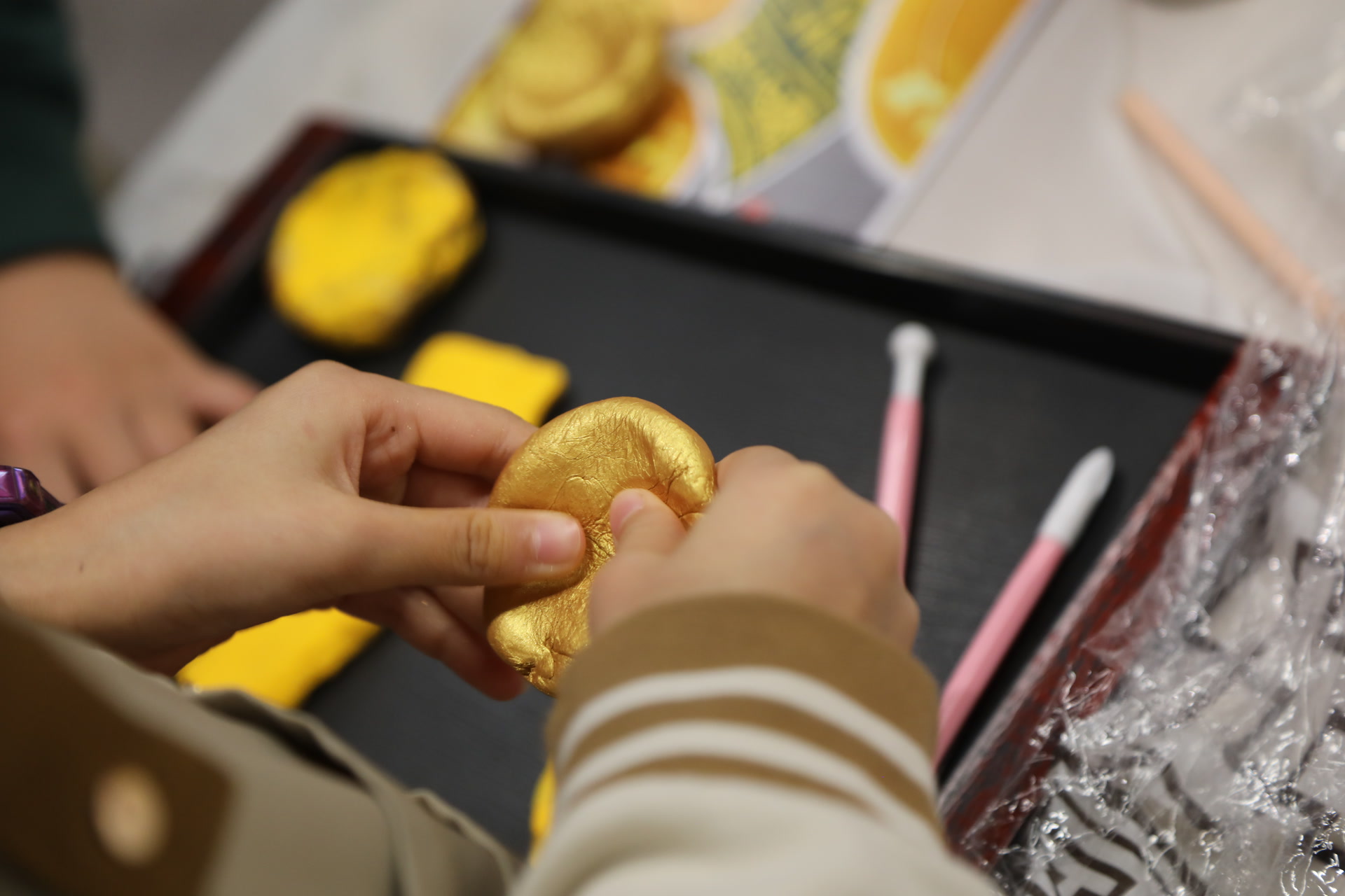在体验环节,12名参与者以3人为一组,共组成4支小队,开启“仿制饼金”的任务挑战。各小组分工协作,有的负责调配材料、把控比例,有的专注塑形、校准尺寸,彼此沟通磨合,在实践中感受汉代工匠的严谨与智慧,也深刻体会到“酎金”背后的“权谋重量”。