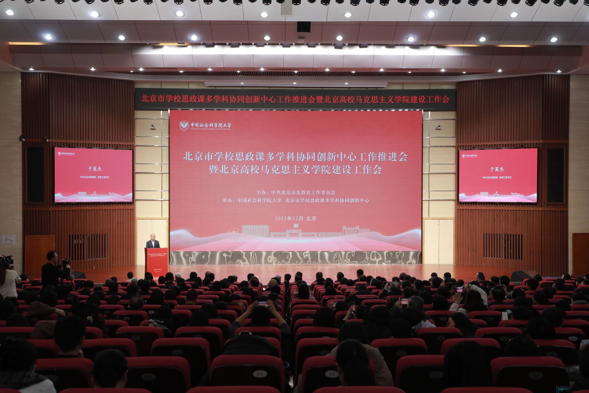 12月26日,北京市学校思政课多学科协同创新中心工作推进会暨北京高校马克思主义学院建设工作会在中国社会科学院大学举办。会议发布2026年多学科中心改革攻坚“六项行动”以及《关于进一步推进北京高校马克思主义学院高质量发展的若干措施》(以下简称《若干措施》),为北京高校马院高质量发展提供了方法指引,为教育强国首善之区建设提供强大思政引领力。