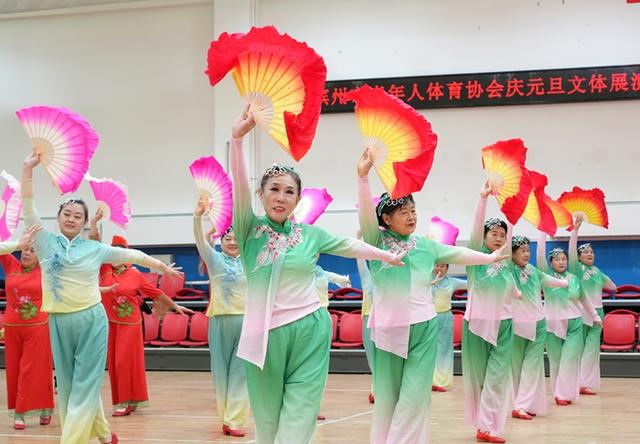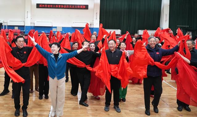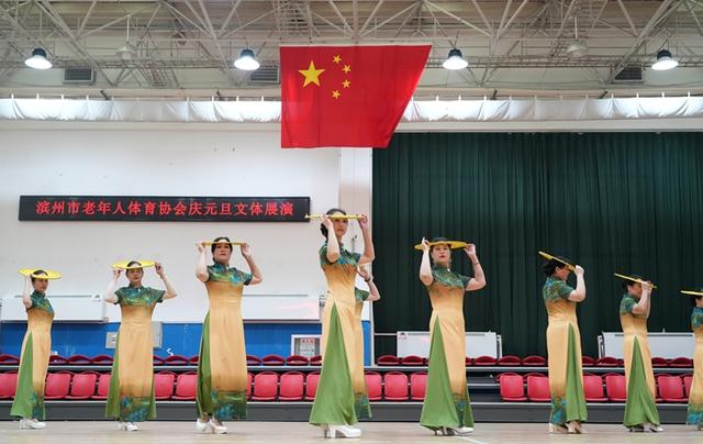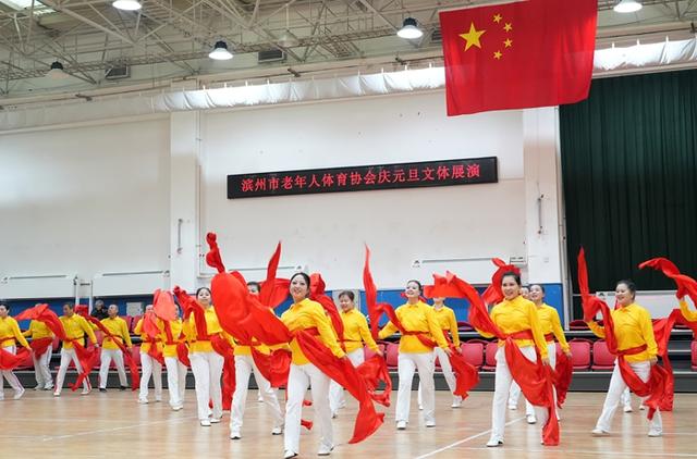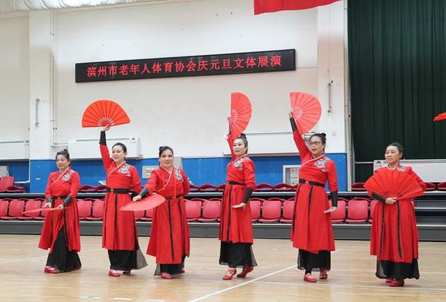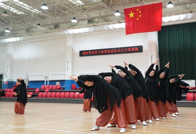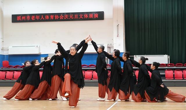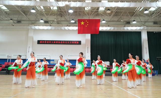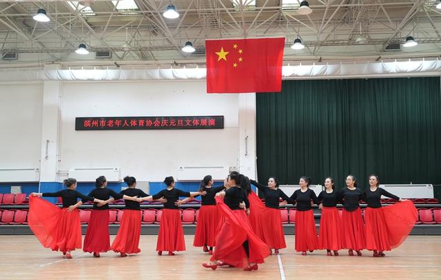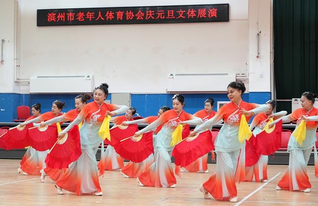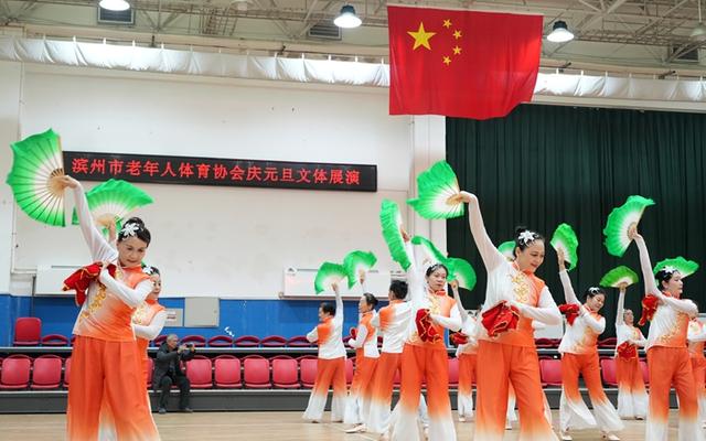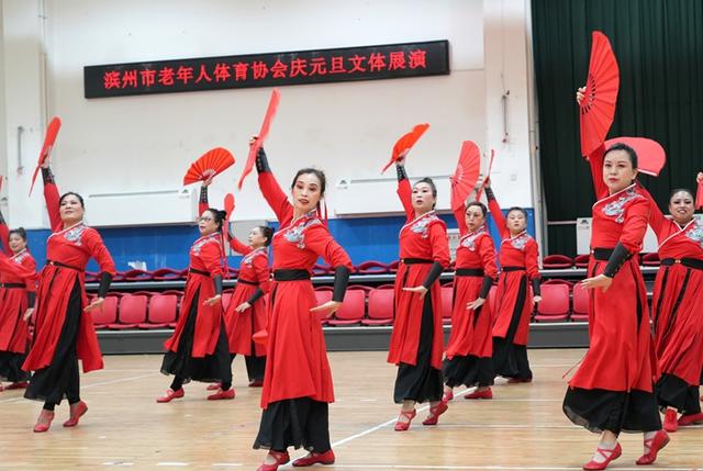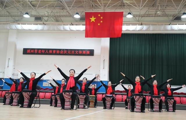 12月28日,滨州市老年人体育协会庆元旦文体展演活动在市老年体育活动中心举行。来自社会各界的老年体育参与者近300人精心编排12个节目欢聚一堂。