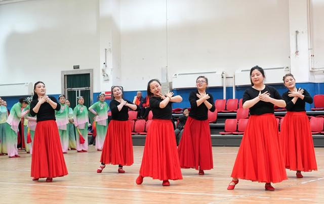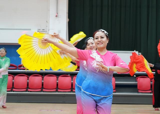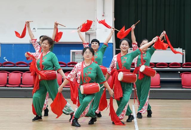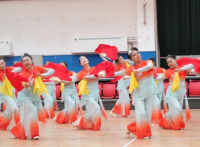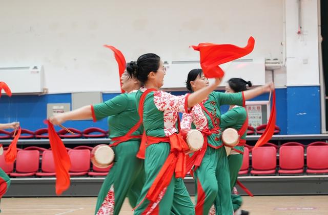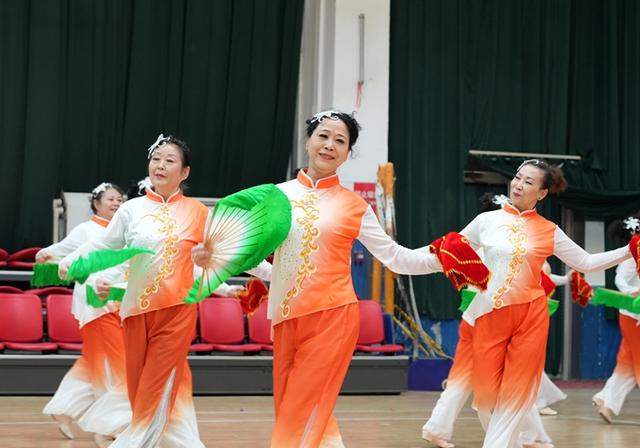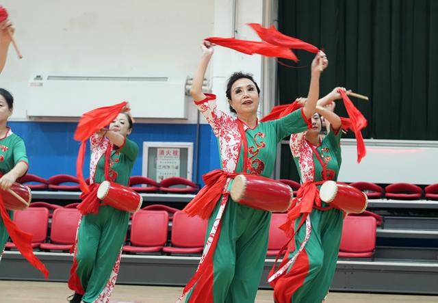 活动在长绸舞《中华全家福》中拉开帷幕,随后响扇、秧歌、柔力球、手拍鼓、模特走秀、拉丁舞、气舞、集体舞等接续上演,活动现场氛围高潮迭起,老同志们喜笑颜开,掌声不断。活动最后全场大联动,到场的领导嘉宾和演职人员、观众一同下场扭起了大秧歌《欢庆秧歌》,氛围到达最高潮。