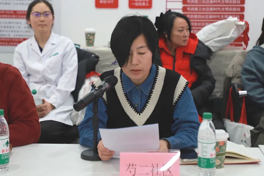 来自芍药居二社区、芍药居五社区和西坝河北里社区的居委会负责人依次发言,分享了各自社区在2025年依托辖区特色、社区活动等平台,组织开展中医药知识讲座、养生功法推广、中药辨识体验等活动的经验与心得,生动展现了中医药融入社区管理、服务居民健康需求的工作实效。
