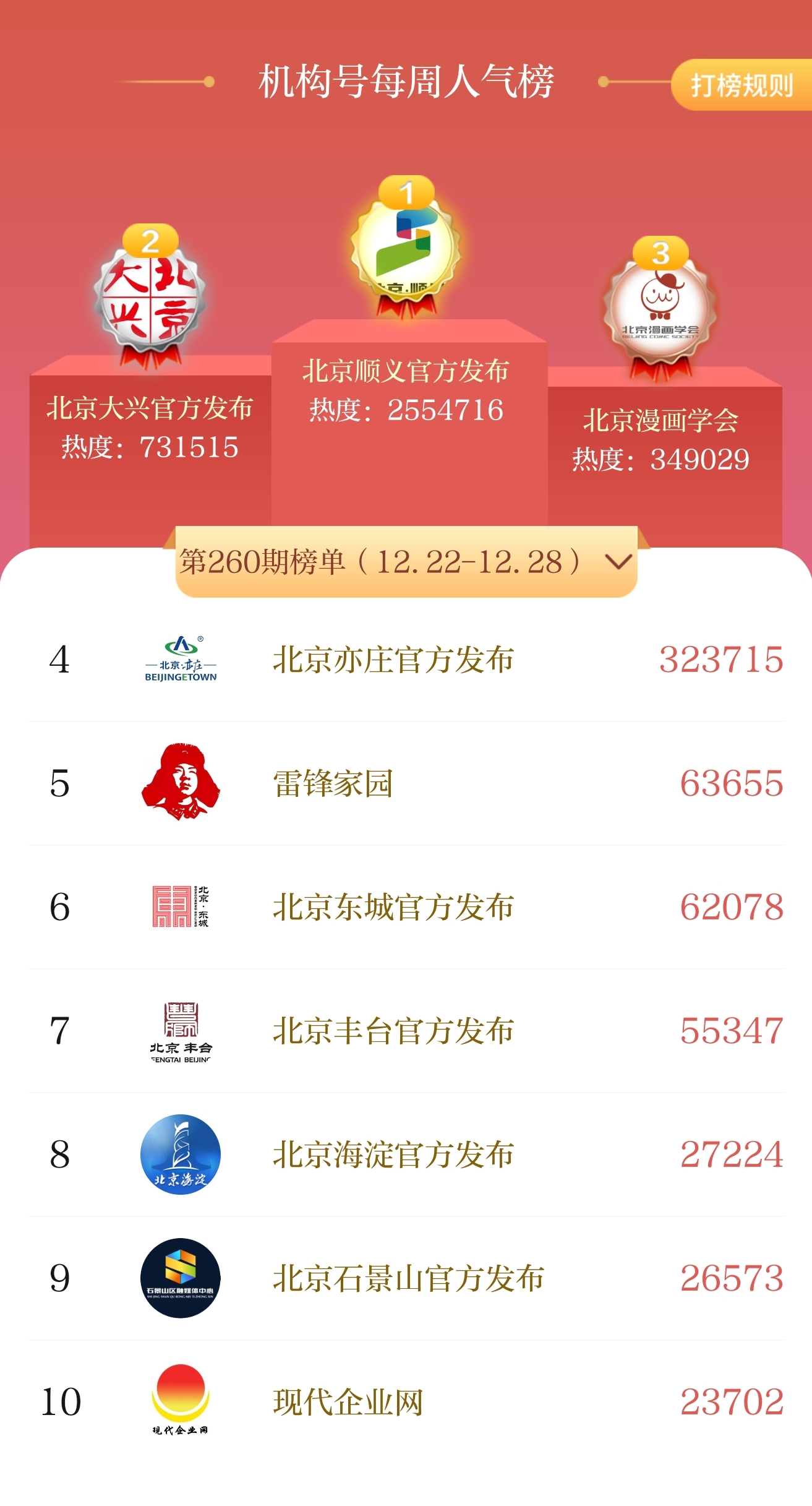 12月22日至12月28日 | 北京号一周人气榜