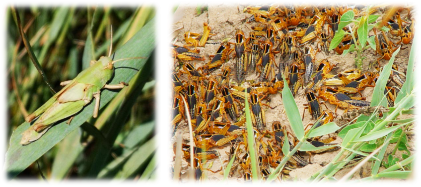 散居型蝗虫(左图)与群居型蝗虫(右图)