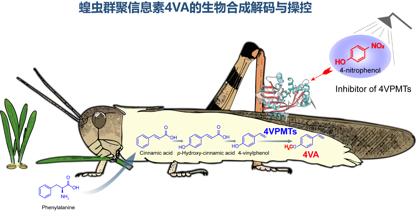 蝗虫群聚信息素4VA的生物合成解码与操控