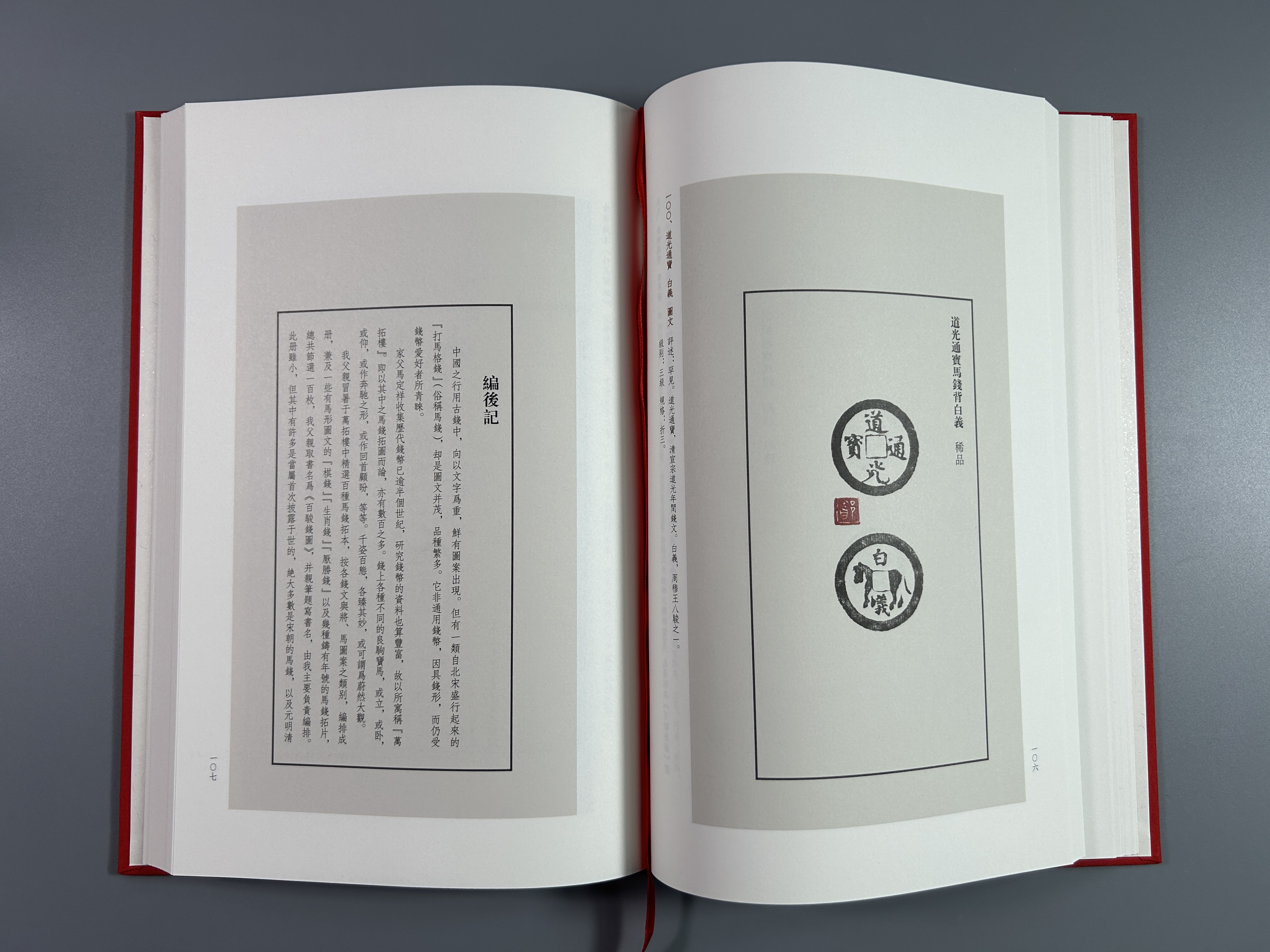 本书的整理工作历时近3年,为了能让读者感受到老一辈泉家的治学法度,在马定祥先生捐赠的海量文献资料中甄选马钱拓片367张,除将图片做还原处理之外,尽可能尊重马老创作原貌。期间不断在浙江省博物馆马定祥中国钱币研究中心发掘新资料、新数据,数易其稿,精益求精而成。编者对于每一枚马钱的名称、介绍、级别、规格等进行批注,特别是按照马定祥先生首创的“十分法”标级。众多业内收藏家、学者参与编纂和审定。由浙江省博物馆党委书记、馆长纪云飞先生和马传德先生深情作序。书中还首次披露马定祥、朱绍森、方鹤林等老一辈泉家的珍贵影像及马定祥先生手书原稿、珍稀马钱彩图。封面选用马定祥先生题字,布面精装,特选城楼同款红绒布,“中国红”的庄重感油然而生,应合龙马精神,为马年贺岁佳品。为了精彩呈现,选用特种纸材料,印刷和装订工艺精良,效果接近原拓,让读者近距离领略马定祥先生泉拓之美,更能在“打马格钱”上领略中国传统艺术的书法和绘画之美,为古钱币鉴赏、民俗研究及工艺美术爱好者的实用工具书。