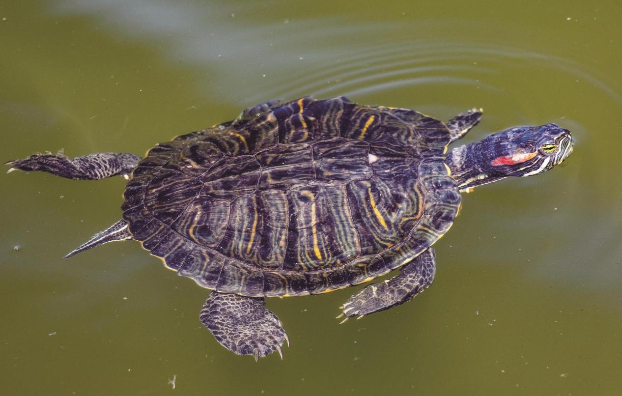 有一种“红耳彩龟”,因眼部两侧长有鲜红的斑块而显得可爱、喜庆,在20世纪80年代被引入中国。然而四十多年过去了,它的数量急剧增长,如今我国已成为红耳彩龟分布最广的国家之一。研究表明,随意放生是导致这种外来龟类泛滥的重要原因。