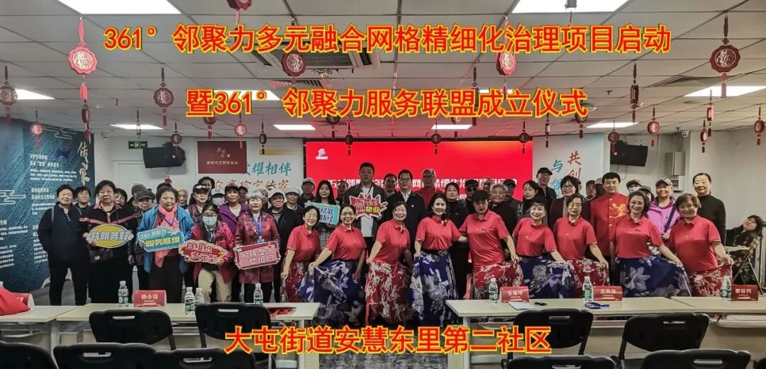 2025年,社区党委创新推出“361°邻聚力”品牌,秉持全维度参与、全覆盖服务、全时段供给的工作理念,以网格化精细治理为切入点,始终坚持比360°全方位、无死角、零距离“多一度”的服务主旋律,以“3型”组织体系融合政企民多方力量,以“6融”工作路径联通区域发展,构建“1张网”东西片区协同共生治理格局,致力于营造共建共享、友邻和谐的社区美好氛围。本年度围绕“邻聚力”主题,着力组建“邻聚力服务联盟”,健全制度、赋能培育、开展议事、总结品牌,为社区持续注入多元共治的澎湃动能。